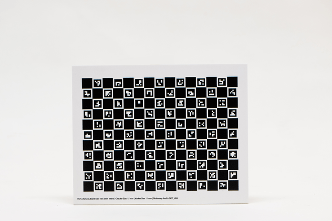 The most significant advantage of charuco targets lies in the unique coding and identifiability of checker areas. Therefore, even partially obscured and unsuitable camera photos are usable in camera calibration.